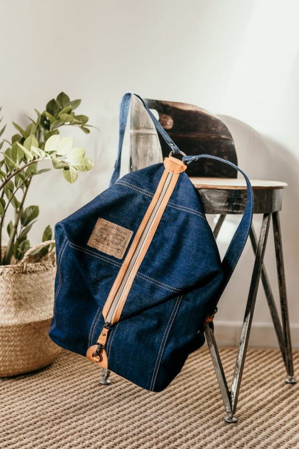 Zaino artigianale realizzato in tessuto di jeans Levi’s .